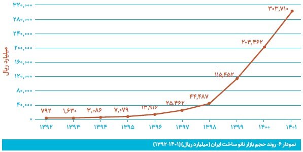 متوسط رشد سالانه بازار فناوری نانو ایران از سال ۱۳۹۲ تا پایان سال ۱۴۰۱ حدود ۹۶ درصد بوده است.